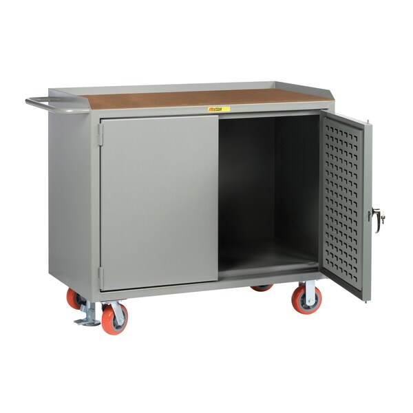 Mobile Bench Cabinets, 36"W, Louvered Panel Doors, 1/4" Hardboard