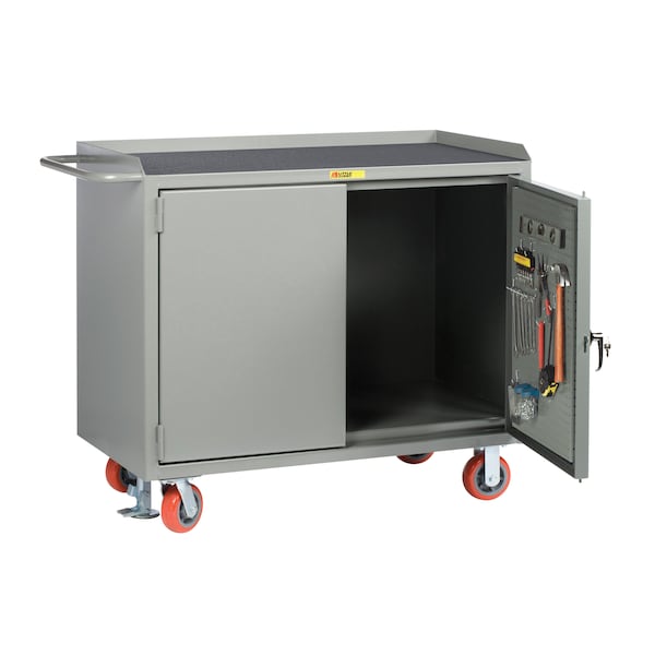 Mobile Bench Cabinets, 36"W, Pegboard Panel Doors, Vinyl Mat