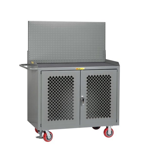 Mobile Bench Cabinets, Perf Doors, 36"W, Pegboard Panel, Vinyl Mat