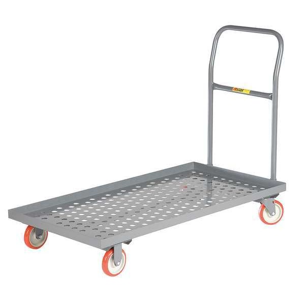 Platform Truck, Load Capacity 1,600 lb, Overall Height 37 in, Overall Length 37 in, Overall Width 24 in, Deck Construction Perforated, Deck Material Steel, Deck Finish/Coating Powder Coated, Deck Gauge 12 ga, Deck Height 9 in, Deck Length 36 in, Deck Width 24 in, Deck Surface Smooth, Frame Material Steel, Frame Finish/Coating Powder Coated, Handle Type Removable Raised, Lip Style 4-Sided Lipped, Lip Height 1 1/2 in, Side Panel Type No Side Panels, Number of Platforms 1, Color Gray