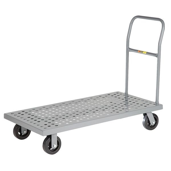 Platform Truck, Load Capacity 1,600 lb, Overall Height 35 1/2 in, Overall Length 49 in, Overall Width 24 in, Deck Construction Perforated, Deck Material Steel, Deck Finish/Coating Powder Coated, Deck Gauge 12 ga, Deck Height 9 in, Deck Length 48 in, Deck Width 24 in, Deck Surface Smooth, Frame Material Steel, Frame Finish/Coating Powder Coated, Handle Type Removable Raised, Lip Style Flush, Side Panel Type No Side Panels, Number of Platforms 1, Color Gray