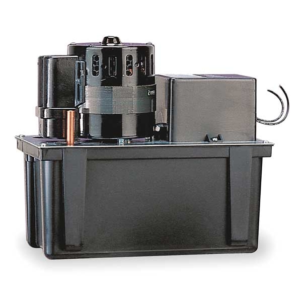 Condensate Removal Pump, Discharge Connection Style Barbed, Horsepower 1/4 hp, Includes 5 in Lead Wires, Intake Connection Style Open, Maximum Feet of Head 45 ft, Maximum Flow Rate @ 10 Feet of Head 6.87 gpm, Maximum Flow Rate @ 15 Feet of Head 6.33 gpm, Maximum Flow Rate @ 1 Foot of Head 7.5 gpm, Maximum Flow Rate @ 20 Feet of Head 5.4 gpm, Maximum Media Temperature 120 Degrees F, Nameplate Voltage 230V AC, Plenum Rated No, Pump Type Standard, Series VCL-45ULS, Series Family VCL