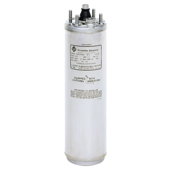 Submersible Pump Motor, Bearing Protection Not Applicable, Body Dia. 3.8 in, Bolt Circle Dia. 2 7/8 in, CC Number Not Applicable, Conduit Box Location Not Applicable, Conduit Box Position Not Applicable, Diaphragm Type Pressure Equalizing, Duty Cycle Continuous, Finish Not Applicable, Frame Not Applicable, Hz 60 Hz, Full Load Amps 10.0, Height 16 5/8 in, HP 1 1/2, Includes Not Applicable, Ins. Class B, Inverter Rated No, Inverter Rating Not Applicable, Lead Length 4 ft