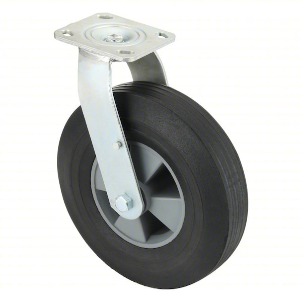 Swivel Caster, Wheel Dia. 10 in, Wheel Material Rubber