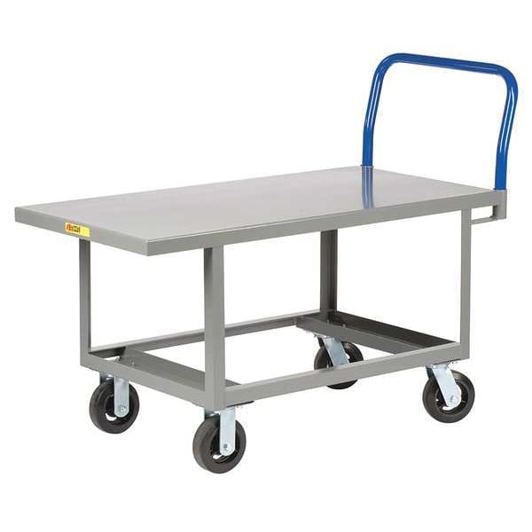 Platform Truck, Load Capacity 2,000 lb, Overall Height 40 in, Overall Length 62 in, Overall Width 24 in, Deck Construction Solid, Deck Material Steel, Deck Finish/Coating Powder Coated, Deck Gauge 12 ga, Deck Height 26 in, Deck Length 60 in, Deck Width 24 in, Deck Surface Smooth, Frame Material Steel, Frame Finish/Coating Powder Coated, Handle Type Removable Raised, Lip Style Flush, Side Panel Type No Side Panels, Number of Platforms 1, Color Blue, Gray