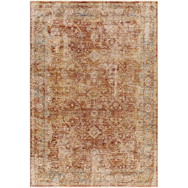 Introducing the Aspendos Area Rug, a stunning piece that perfectly marries traditional design with contemporary flair. This Turkish-made treasure is machine woven from durable polyester, making it an excellent choice for high traffic areas in your home. The updated traditional style offers a timeless aesthetic, while the charming fringe adds an extra touch of sophistication. Despite its low pile construction, we recommend using it with a rug pad for added comfort and longevity. Maintaining this beautiful rug is effortless; simply spot clean it with mild detergent as needed. With the Aspendos Area Rug, you're not just getting a rug - you're adding an enchanting piece of decor to your space.