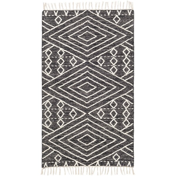 This one-of-a-kind Bedouin area rug is a perfect way to add global flair to any room. Constructed from a blend of wool and cotton, this high/low rug features hand woven construction for durability. Its no pile design ensures that it will stay in place for years to come. This beautiful rug has a fringe and is made in India. Use with a rug pad not included for added comfort and stability. Spot clean only as needed. Add this unique piece to your home today!