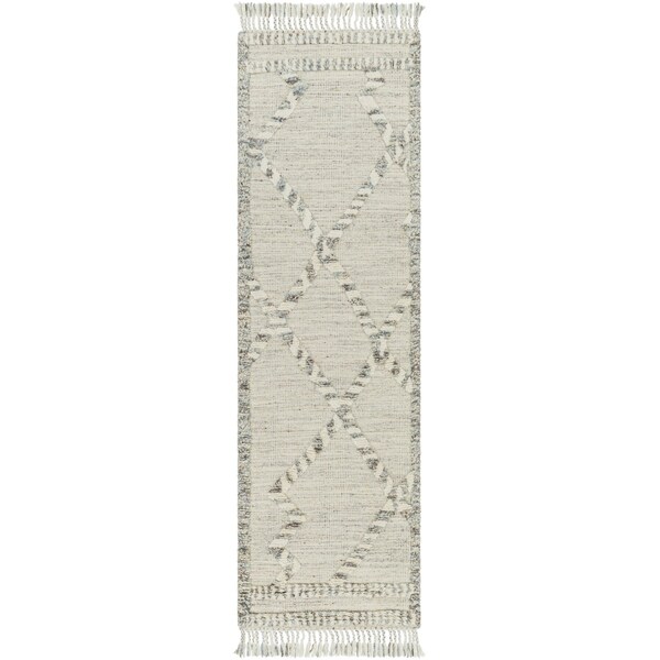 This stunning Cadiz Hand-Made Rug is sure to be a standout in any home. With its Moroccan Global style and plush pile, this wool rug will add a unique texture and look to any room. The hand-knotted construction from India makes it incredibly durable while also creating an eye-catching design with the added fringe detail. To ensure the longevity of your rug, we recommend using it with a rug pad for added protection and professional cleaning only. Bring exotic style to your space with this beautiful Cadiz Hand-Made Rug!