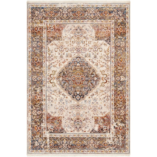 This Ephesians area rug is the perfect way to bring an updated traditional style to your home. Woven in Turkey of polyester, this machine-made rug features a medium pile that is ideal for high traffic areas. The beautiful fringe adds a touch of texture and sophistication. For added comfort and durability, use with a rug pad not included. Easy to maintain, spot clean with mild detergent as needed. Add luxury and elegance to any room in your home with this exquisite area rug!
