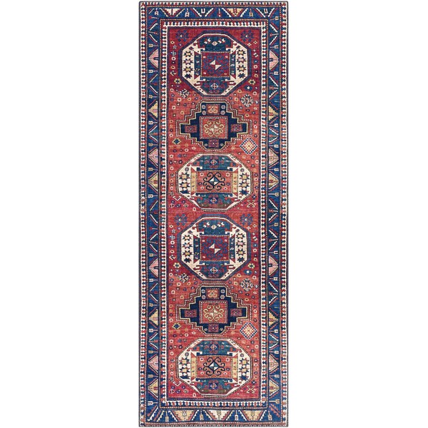 This Iris area rug is the perfect choice for any traditional style space. It's made from durable polyester and features a no-pile construction, making it ideal for high traffic areas. The machine woven construction ensures long-lasting use, while spot cleaning is recommended to maintain its pristine look. For best results, pair with a rug pad to help protect the floor beneath it and extend the life of the rug.