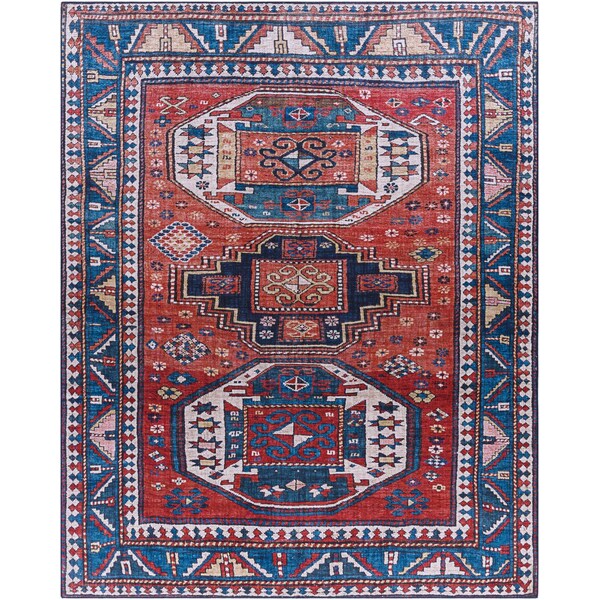 This Iris area rug is the perfect choice for any traditional style space. It's made from durable polyester and features a no-pile construction, making it ideal for high traffic areas. The machine woven construction ensures long-lasting use, while spot cleaning is recommended to maintain its pristine look. For best results, pair with a rug pad to help protect the floor beneath it and extend the life of the rug.