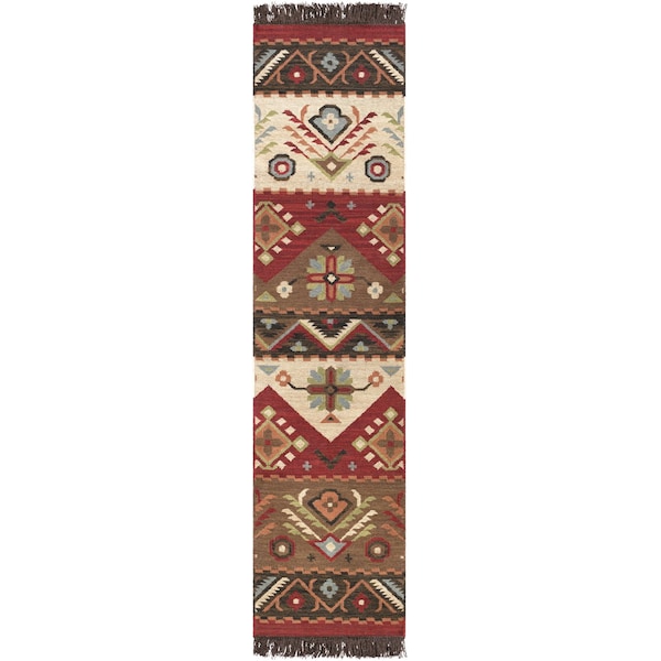 This stunning Jewel Tone area rug is the perfect addition to your home. With its rustic style and hand-woven construction, this wool rug will add a unique touch of texture and warmth to your decor. The fringe adds an extra element of visual interest while the no-pile design ensures durability and ease of maintenance. Crafted in India with care, this area rug is sure to make a statement in any room. For best results, use with a rug pad for added stability. Make this beautiful Jewel Tone area rug yours today!