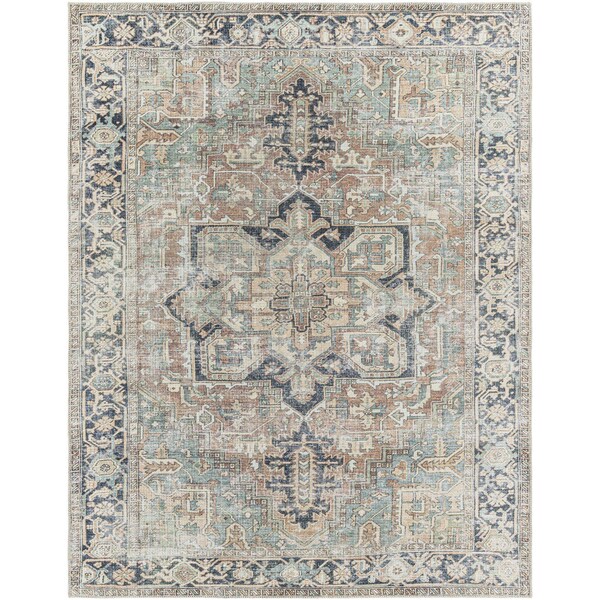 Introducing the Kemer area rug, a striking and timeless piece perfect for any modern home. Crafted from durable polyester and made in Turkey, this updated traditional style rug is machine woven for long-lasting quality and low-maintenance care. This no pile rug is designed to withstand high traffic areas, making it an ideal choice for your entryway or living room. Plus, with the addition of a rug pad underneath not included, you can enjoy even more comfort and stability. When it comes to cleaning up spills or dirt, simply machine wash cold on delicate cycle ? no bleach needed! Line dry or dry clean low heat as needed. Bring classic charm to your home with the Kemer area rug!