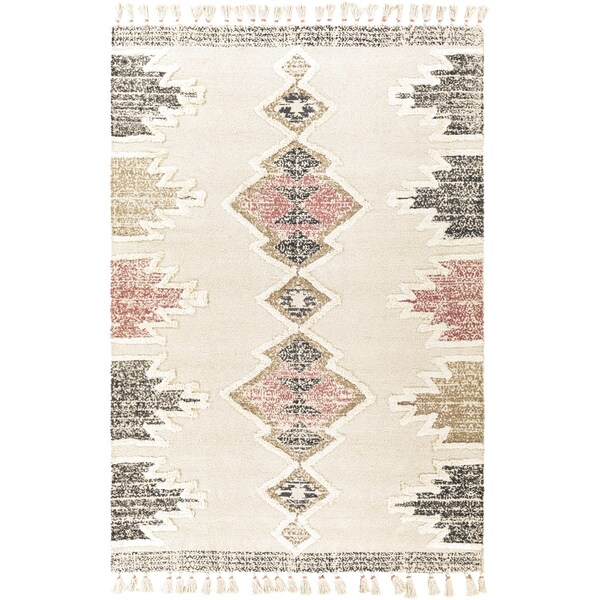 This alluring Khemisset area rug will bring a global touch to any room. Woven from Cotton and Jute, this hand loomed floor covering has no pile and features an eye-catching fringe. This unique piece is crafted in India by skilled artisans for an unmistakable style that will complement any decor. To keep the beauty of your rug lasting, we recommend using a rug pad not included and spot cleaning only as needed.