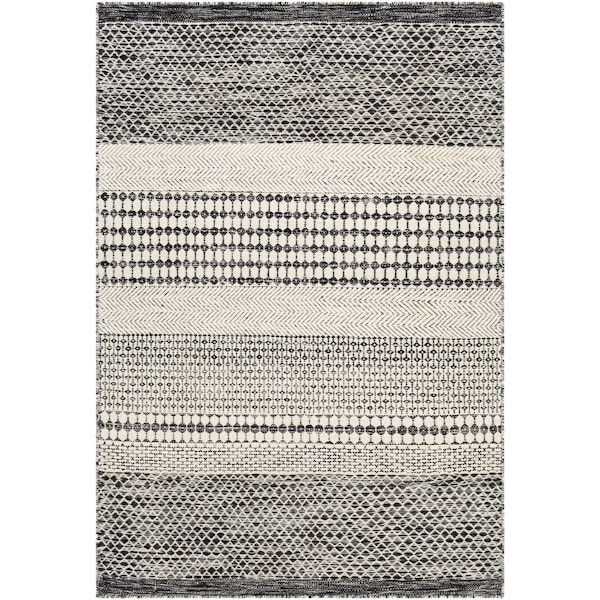 This Mardin area rug is the perfect way to add global style to any room. The wool construction ensures durability and longevity, while the hand-woven construction gives this piece a unique look that will stand out in any setting. It has no pile, making it a great option for high traffic areas. This stylish and eye-catching rug is made in India and designed to last. Spot clean only for easy maintenance and use with a rug pad for best results.