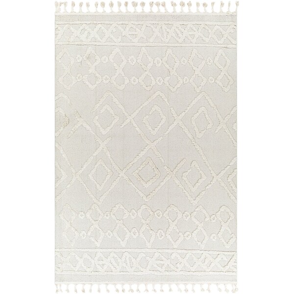 Introduce a dash of Bohemian flair into your living space with the Nora area rug. Boasting a global-inspired design and captivating fringe details, this piece is sure to make a statement in any room. Made of polypropylene and machine woven in Turkey, this high pile rug offers plush comfort underfoot. We recommend use with a rug pad for added cushioning and to prevent sliding. Keeping it clean is easy too - simply spot clean with mild detergent as needed. Transform your interiors with this stunning rug that perfectly blends style, comfort, and convenience!