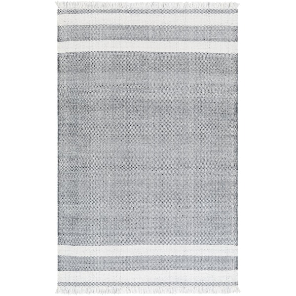 Take your decor to the next level with this Primrose area rug. This hand-woven piece is constructed with recycled PET yarn and features a fringe for an extra touch of character. With its no pile design, it is perfect for high traffic areas and won't wear down easily. Crafted in India, this cottage style rug is sure to add a unique style to any room. For extra protection, use with a rug pad not included.