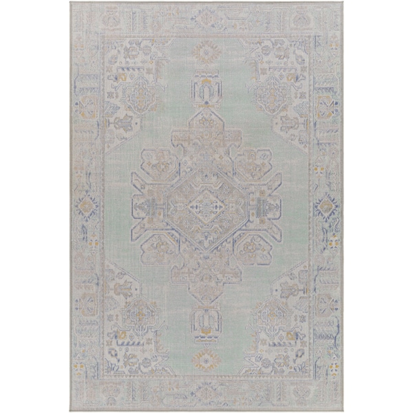 Introducing Rafetus, an exquisite area rug that will bring a unique and luxurious look to your home. The Updated Traditional style is perfect for any modern or traditional decor and the Polypropylene material ensures it is long-lasting and durable. Machine woven in Turkey with low pile, this rug is suitable for high traffic areas yet still retains its softness. For added protection, we recommend using a rug pad with this piece. Easy to care for, simply spot clean with mild detergent when needed. Bring Rafetus into your home today and enjoy the timeless elegance it brings!