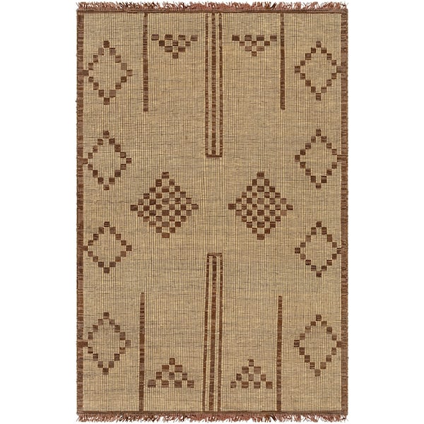 This elegant Touareg area rug is the perfect statement piece for any room. Combining the natural beauty of jute and leather, this hand-woven masterpiece from India brings a global style to your decor that will stand out in any space. The no-pile construction is both comfortable and durable, making it ideal for high traffic areas. This unique design features a fringe along the edges for an added touch of sophistication. For best results, use with a rug pad not included. Add this exceptional area rug to your home today!