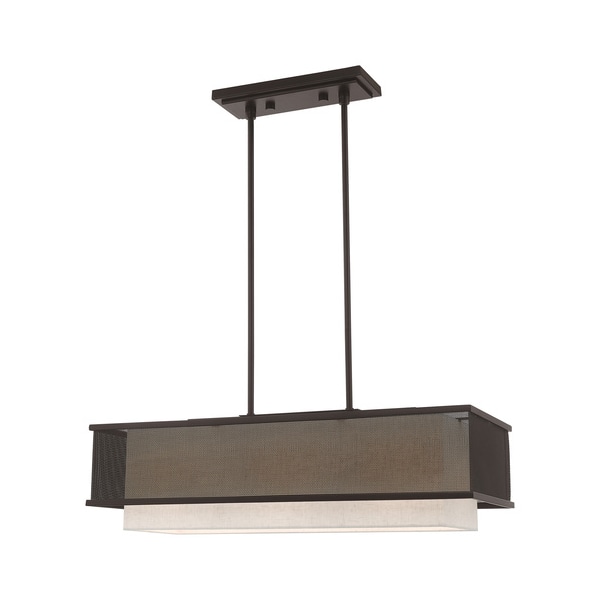 Bronze Stainless Steel Mesh Shade Outside & Hand Crafted Oatmeal Fabric Hardback Shade Inside