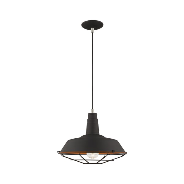 Black Metal Shade with Black Wire Cage and Gold Finish Inside