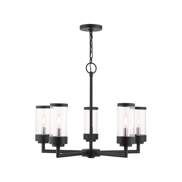 Textured Black Outdoor Chandelier,5 Ligh