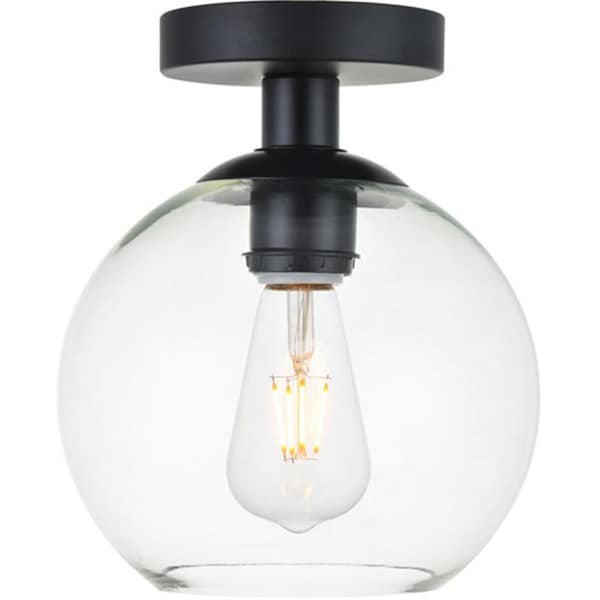 Refined style with a practical design Baxter flush-mount ceiling lamps bring cosmopolitan sophistication anywhere especially to an entryway hallway bathroom kitchen or closet.The smooth iron frame features a disk-shaped canopy and in a black finish.The clear spherical glass shade remains open at the center to allow for effortless replacement of the filament-style bulb not included.Living in the big city has never been this easy.Features.Smooth iron frame with disk-shaped canopy in black finish.Spherical clear glass shade with open center for easy bulb replacement.Glass shade width of 7.9 inches with a height of 7.1 inches.Requires a standard bulb or LED E26 bulb not included.no assembly required.clean sleek design Usages.Entryway hallway kitchen closet bathroom Specifications.Collection: Baxter.Finish: Black & Clear.Style: Midcentury Modern.Fixture Material: Iron & Glass.Assembly Required: No.Lighting Shade Included: Yes.Lighting Shade Material: Glass.Lighting Shade Color: Clear.Lighting Shade Shape: Ball.Lighting Canopy: Yes.Lighting Voltage: 110-125V.Dry/Wet/Damp Location: Dry Rated.ETL: Yes.Number of Tiers: 1.Maximum Wattage: 40W.Bulb Wattage: 40W.Lighting Dimmable: Yes.Lighting Socket Type: E26.Number of Lights: 1.Light Direction: Down.Lighting Wire Color: Black & white.Lighting Wire Size: 11 in..Lighting Hanging Device Adjustable: No.Lighting Canopy Dimension: 1in H x 4.7in W x 4.7in L.Lighting Shade Size: 7.1in H x 7.9in W.Dimension: 9.3in H x 7.9in W x 7.9in L.Weight: 2.8 lbs