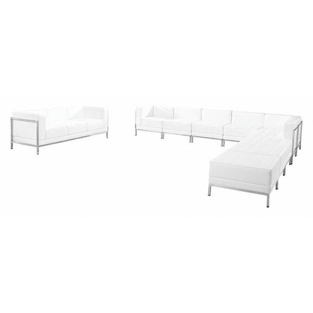 HERCULES Imagination Series Melrose White LeatherSoft Sofa, Chair & Ottoman Set with Ganging Clips