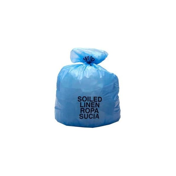 HIGH DENSITY BLUE SOILED LINEN LINER, 14 MICRONS, 31" X 41", PKG QTY 250 THE STAR-SEAL BOTTOM CONSTRUCTION OF THIS BAG MAKES THE LINER STRONG AND SECURE. "SOILED LINEN" IS PRINTED IN BOTH ENGLISH AND SPANISH. THIS BAG IS COMMONLY USED BY THE HOUSEKEEPING STAFF.