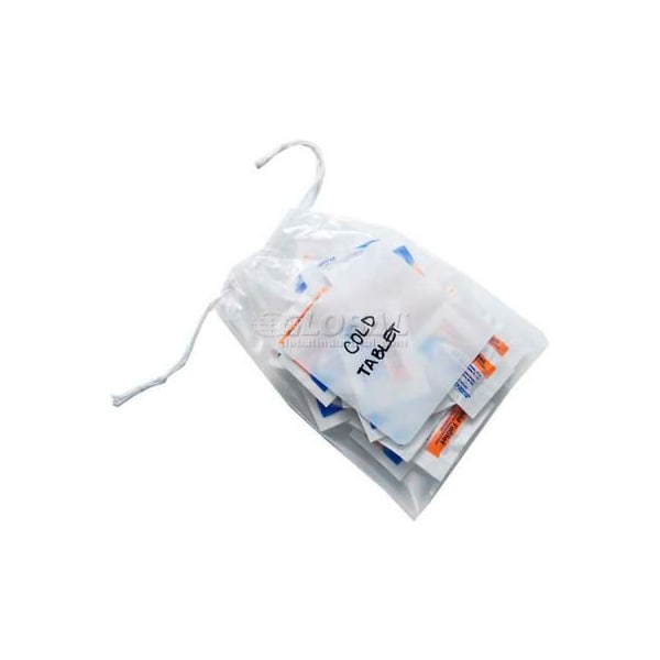 The polypropylene pull tite drawstring bags feature a double pull drawstring that opens easily and provides a secure closure for a convenient means of hanging the bag. Polypropylene provides exceptional clarity for outstanding product presentation. These bags are available in both clear and clear with a white write on block for easy product labeling and identification. They are an excellent economical substitute for cloth drawstring bags. These bags can be used for storing parts, work orders, manuals, samples, personal belongings, hotel guest courtesy bag, retail packaging, craft stores and more. They meet fda requirements for use in food applications.