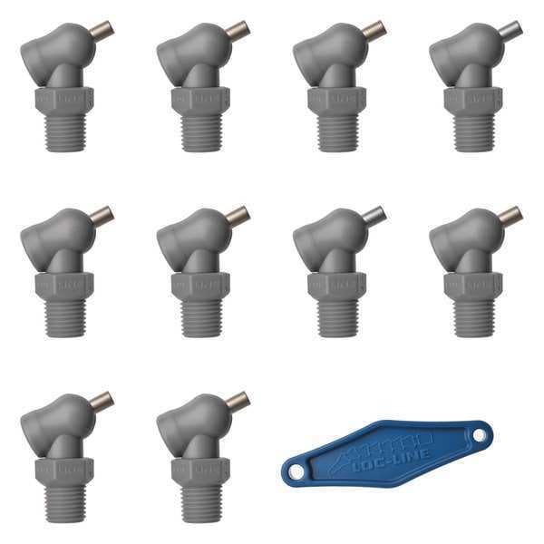 XR Style Nozzle, Swing Angle - Maximum 110 Degrees , Pressure Rating - Maximum 1,000 psi, Compatible Lubricants Acetone, Alcohol, Dish Detergents, Ethyl, Gasoline, Grease Lacquer Solvents, Oils, Sodium Hydroxide, Temperature Rating - Maximum 115 Degrees F, Non-Threaded Connection Diameter Not Applicable, Connection Thread Size 1/4 In., Connection Thread Type NPT, Connection Thread Gender Male, Product Type XR Style Nozzle, Hole Diameter 0.06 in