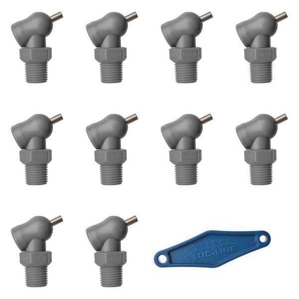 XR Style Nozzle, Swing Angle - Maximum 110 Degrees , Pressure Rating - Maximum 1,000 psi, Compatible Lubricants Acetone, Alcohol, Dish Detergents, Ethyl, Gasoline, Grease Lacquer Solvents, Oils, Sodium Hydroxide, Temperature Rating - Maximum 115 Degrees F, Non-Threaded Connection Diameter Not Applicable, Connection Thread Size 1/4 In., Connection Thread Type NPT, Connection Thread Gender Male, Product Type XR Style Nozzle, Hole Diameter 0.12 in