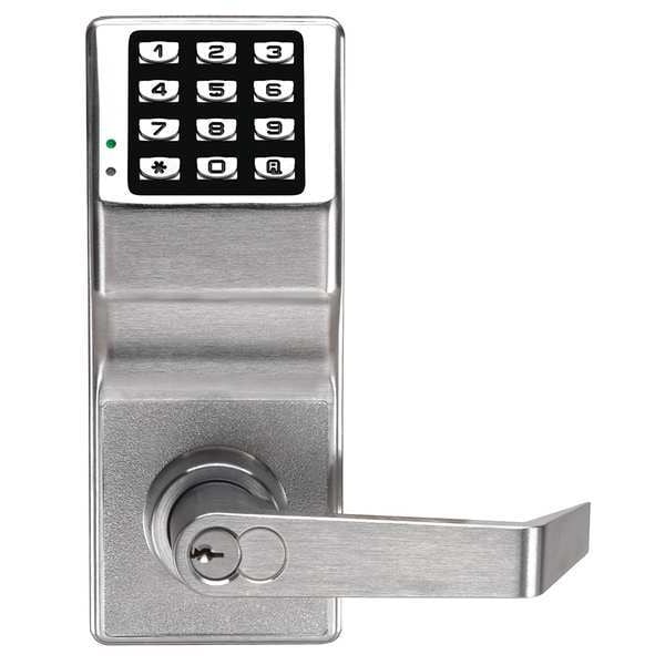 Electronic Keyless Lock, Function Entry with Key Override, Access Method Proximity and Keypad, Mounting Style Cylindrical, Lock Material Zinc Alloy, Finish Satin Chrome, Series DL6100, Handle Type Lever, Door Thickness 1-3/8 in to 1-7/8 in, Key Override Options Interchangeable Core, Hand Nonhanded, Network Interface 802.11 b/g, Keypad Material Metal, Power Source (4) C Batteries, Battery Life 5 yr, Max. User Codes 5000, Fire Rating 3 hr, ADA Compliant Yes, Grade 1