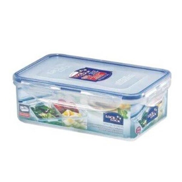 With a convenient divider, this big 34-ounce container is perfect for packing up multiple food items like hamburgers and hot dogs or side helpings of potato salad and mac-n-cheese. A lightweight design makes this versatile rectangular container ideal for bringing meals to work or school or for packing up treats for parties, picnics and more. Lock & lock's patented 4-hinge locking system has been durability tested to last up to 3 million uses, and the enhanced silicone seal is 100% airtight to keep foods fresh longer and 100% leakproof to prevent messy drips and sloppy spills. Bpa-free construction provides a healthy and versatile storage solution for the refrigerator, freezer, pantry, or anywhere your foods travel, and easy essentials containers are microwave safe for convenient reheating and dishwasher safe for easy cleanup.