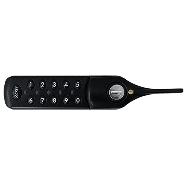 LockeyUSA EC782 Black Electronic Push Button Digital Cabinet Lock, ADA Lever Handle, Cam Lock, Locker Lock, Pubic & Private Mode, Keypad Orientation: Left, Key Override, 2 Keys Included, 2-AA Alkaline Batteries Included, Up to 80,000 Cycles Per Pair of AA Batteries, 8-Digit Master Code, 6-Digit Sub Master Code, 4-Digit User Code, 6-Digit Technician Code, Battery Condition Indicator, Audible Keypad (Can Be Turned On/Off), LED Lights, 3-Year Warranty