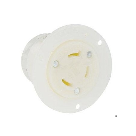 Flanged Locking Receptacle, L23-20R, 20 A, 347/600V AC, Three Phase, 4 Pole, Screw Terminals, White
