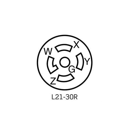 Watertight Locking Receptacle, L21-30R, 30 A, 120/208V AC, Three Phase, 4 Pole, Screw Terminals