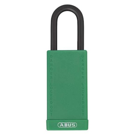 Lockout Padlock, Keyed Alike, Thermoplastic, Green, 1 1/2 in Shackle Height, 1 3/8 in Body Width