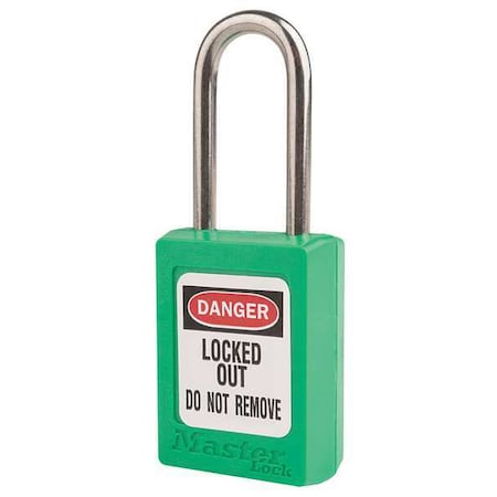 Lockout Padlock, Keyed Alike, Thermoplastic, Green, 1 1/2 in Shackle Height, 1 3/8 in Body Width