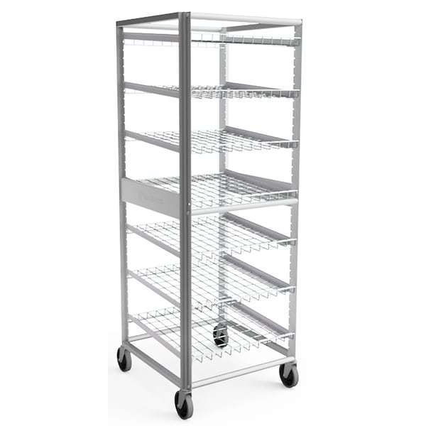 All aluminum construction with removable chrome plated steel grid shelves. 7 removable 1.5" supports provides flexibility of grid spacing adjustable at 1.5" intervals to fit any size cans. Load from back, remove from front for product rotation. 5" casters. Ships knocked down in 2 cartons for freight savings - easy assembly. ETL listed