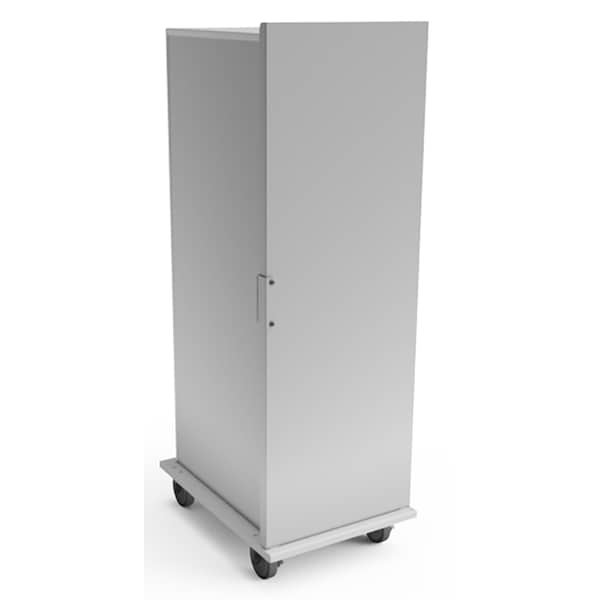 All aluminum construction. Extruded interlocking side panels provide 40 tray slides at 1.5" intervals. Ambient temperature for storage and transport. 5" plate casters (2 with brakes). Ships fully assembled via truckline. ETL listed