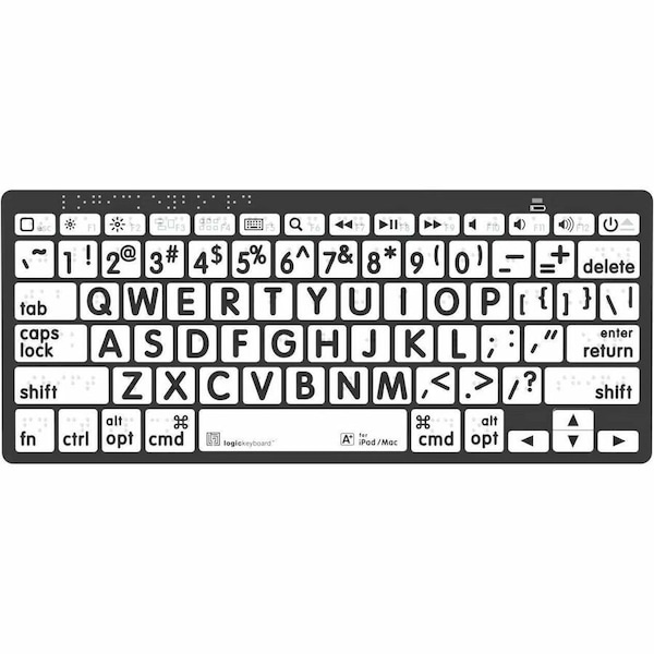 Braille & Large Print - Black on White Mini Bluetooth Keyboard - Mac American English (2) AAA Batteries Quick Setup Guide Warranty Information
