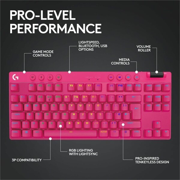 Cable Connectivity - USB Type C Interface - RGB LED Media Control Hot Keys - Windows 10 - PC - Magnetic Keyswitch - Magenta