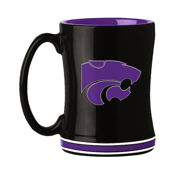 Enjoy this 14 oz. concave ceramic mug featuring your favorite team's colors. A 3-D raised logo adds extra detail, along with a stripe around the bottom. Team name appears on the handle.