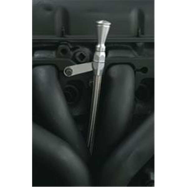 Flexible Engine Dipstick designed with billet aluminum handle to coordinate with Lokar Flexible Transmission Dipstick. Slim design allows mounting inside headers. Designed for use with factory Sanderson cast manifolds or block hugger headers. Features Designed With Billet Aluminum Handle Slim Design Allows Mounting Inside Headers E-Z Read Flexible Inner Dipstick Measuring Cable For Accurate Measure Of Engine Oil Designed For Use With Factory Sanderson Cast Manifolds Or Block Hugger Headers Color - Silver Material - Aluminum Handle Color - Silver Handle Material - Aluminum Tube Color - Silver Tube Material - Stainless Steel