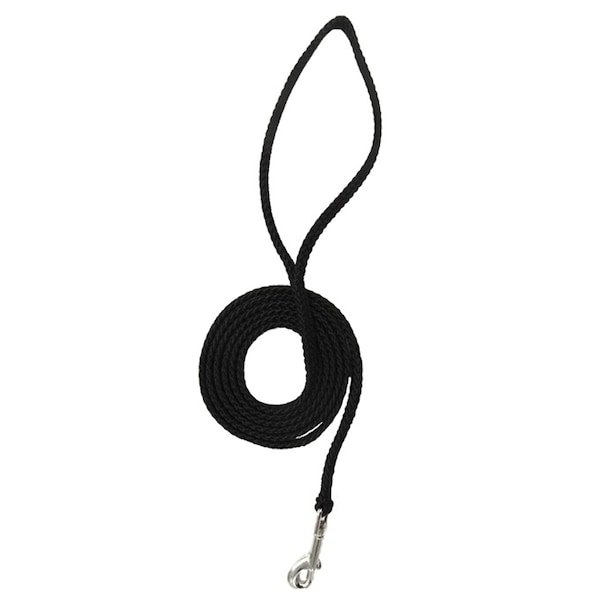 Lone Wolf offers this 1/4" by 6' snap leash in a durable flat braided rope. This product is handmade in America and has a nickel finish swivel bolt snap that allows for quick and easy attachment to the collar. A durable, safe, high quality product constructed from MFP rope and is ideal for toy, small and medium breed dogs.