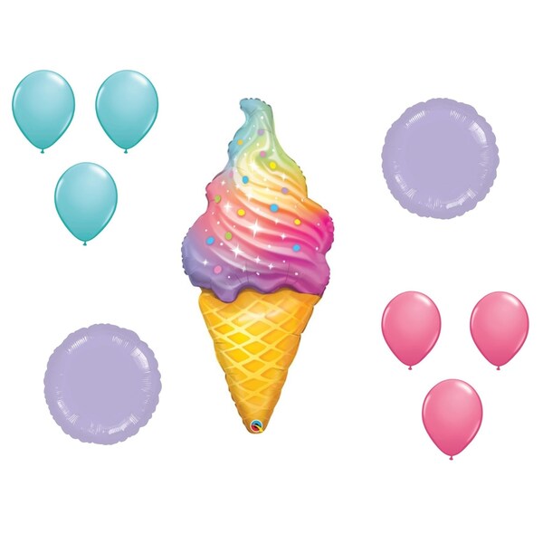 45 Inch Rainbow Swirl Ice Cream Balloon Medium Shape Set 6x latex 2x shape