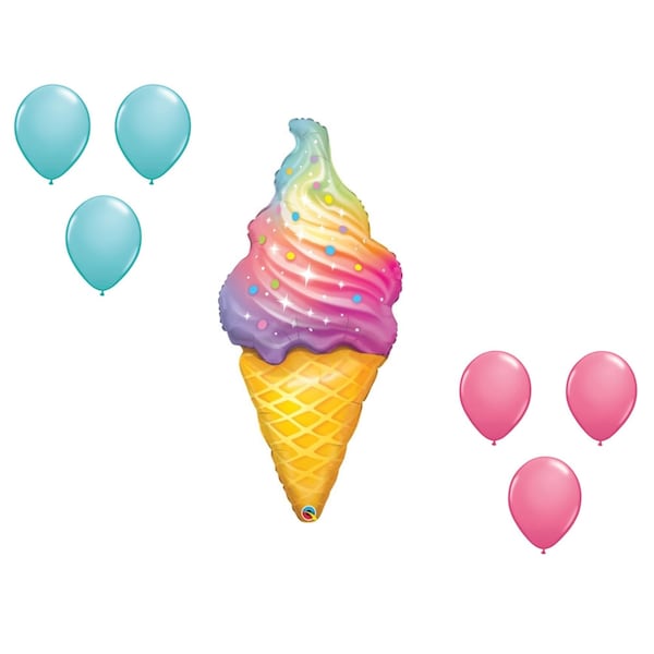 45 Inch Rainbow Swirl Ice Cream Balloon Medium Shape Set 6x latex