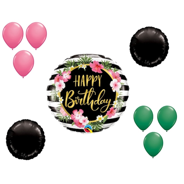 Birthday Hibiscus Stripes Balloon Medium Shape Set 6x latex 2x shape