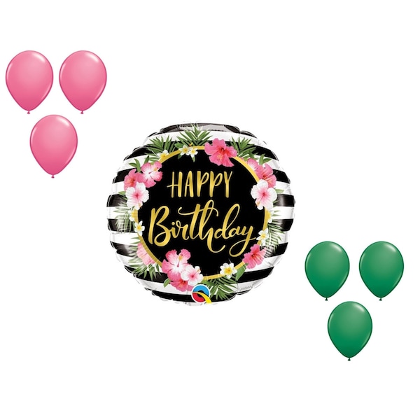 Birthday Hibiscus Stripes Balloon Medium Shape Set 6x latex